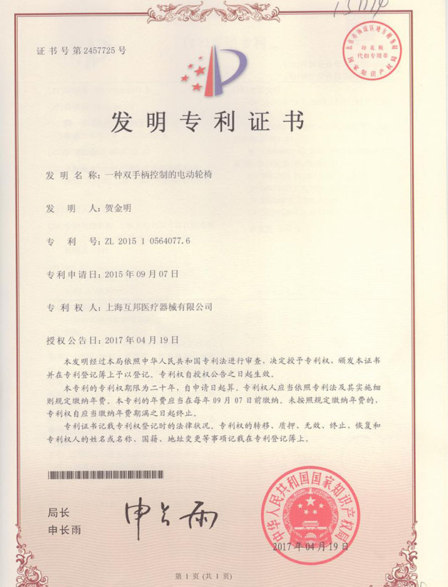 The electric wheelchair has obtained the European CE product certification and is a technology giant (cultivated) enterprise in Shanghai.